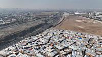 | VUE AÉRIENNE D'UN BIDONVILLE DANS LA BANLIEUE DE LA CAPITALE SANTIAGO, EN MAI 2022. PHOTO MARTIN BERNETTI / AFP |